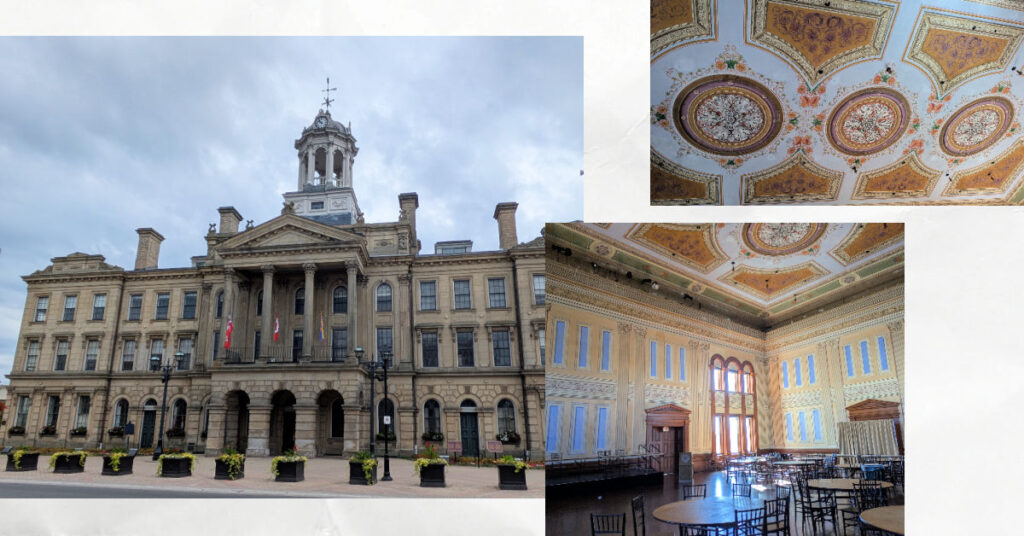 Another highlight of Cobourg that’s hard to miss is Victoria Hall; a prominent historical building which now serves as Town Hall and a multi-functional space in downtown. We are not architecture experts, but that doesn’t diminish our enjoyment of noticing interesting buildings and learning about the history. “Let’s go inside and see if we can look around” I suggested. It was super interesting to walk around and see the old courtroom and a nice event space with a fancy ceiling.