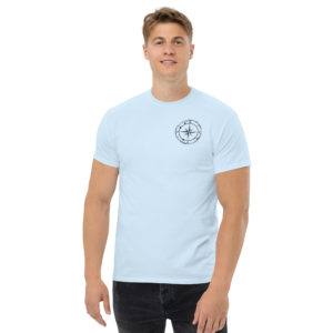 Wear this compass T-shirt on all your life’s adventures! The 100% cotton men’s classic tee will help you land a more structured look. It sits nicely, maintains sharp lines around the edges, and goes perfectly with layered streetwear outfits. Plus, it’s extra trendy now!